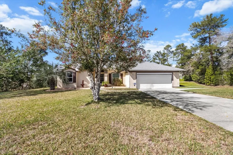 Nestled on on over a third of an acre this lovely home is waiting you to love. Discover this beautifully maintained 3-bedroom, 2-bathroom pool home in the sought-after Oak Village of Sugarmill Woods! Designed for privacy and comfort, the split floor plan features a spacious owner's suite with a large walk-in shower and ensuite bath. The bright, open kitchen is a chef's dream, boasting pristine white cabinetry, extensive granite countertops, and a versatile workspace-perfect for meal prep, homework, or your latest recipe experiments. Throughout most of the home, new waterproof laminate flooring adds both style and durability. Step outside to enjoy indoor-outdoor living with a screened lanai and a sparkling, recently redone pool, just the thing for summer fun! The private well for irrigation keeps the lush landscaping thriving, while new Energy Star windows enhance efficiency and peace of mind. This home also features new Whirlpool stainless steel appliances, a whole-house water filtration system, and a newer hot water heater. Nestled on a peaceful, nature-lover's street with serene greenbelt views, this home is truly a gem. Don't miss out on this stunning home-schedule your showing today! Close