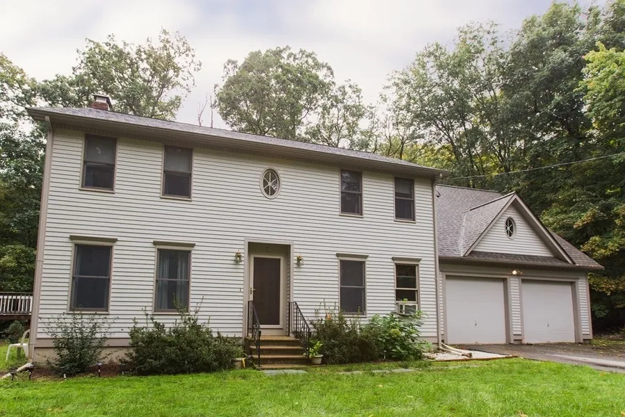 Welcome home to this spacious 4 bedroom colonial nestled in a private lot surrounded by nature. The foyer boasts vaulted ceilings and leads you to a home office, dining room, and comfortable living room. Warm yourself by the fireplace while enjoying the open- concept layout of the space. An intuitive layout of the kitchen opens up to a breakfast space with french doors out to the deck. Upstairs the primary bedroom sprawls over the main room, sitting room, walk-in closet, and bonus space with an oval- shaped window. Primary bathroom includes washer and dryer hookups for out-of-the-way chores. Three more generous bedrooms and a second full bathroom complete the second level. A full basement is ready for you to make your own! Above- ground pool and stone wall in the backyard complete this wonderful home. Great bones make it easy to dress the property to your liking. Close to major routes, Purgatory Chasm, and local farms!
