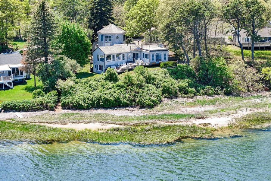 Welcome to 5 Kidd Way- A waterfront property with exceptional views in the coveted enclave of Mayflower Point on the mouth of Pleasant Bay. This home epitomizes coastal living. As you step inside, you are greeted by breathtaking views of Pleasant Bay which offers world-renowned boating. Nestled behind the protective embrace of Nauset's Barrier Beach, this waterfront retreat offers a sense of serenity and security, allowing you to immerse yourself in the natural beauty of your surroundings. Thoughtfully designed & meticulously cared for, the layout is both intuitive and welcoming, with an abundance of natural light creating an atmosphere of warmth & tranquility. Multiple waterside decks, including a roof deck with 360-degree views, offer seamless indoor-outdoor living. Stunning water views are at every turn. There is a lovely carriage house with bonus space & a large lot with expansion opportunities. The water is steps away where you can enjoy walks along the shore, kayaking, sailing, and boating. There is deep water access to the Atlantic, with a mooring available upon harbor master approval and a private association beach on the freshwater shoes of Pilgrim lake.