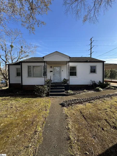 Perfectly situated between downtown Greenville and downtown Travelers Rest, this beautifully updated 2-bedroom, 2-bath ranch offers style, comfort, and convenience. Located on a desirable corner lot, this move-in-ready home features a spacious layout with gleaming hardwood floors and an updated kitchen complete with modern finishes and appliances. Both bathrooms have been tastefully renovated, and recent upgrades include new windows and a new roof for added peace of mind. Enjoy the fully fenced yard—ideal for pets or outdoor entertaining—plus a storage building with electricity and a covered carport for convenience. This home combines classic charm with modern updates and a prime location just minutes from shopping, dining, and the Swamp Rabbit Trail.