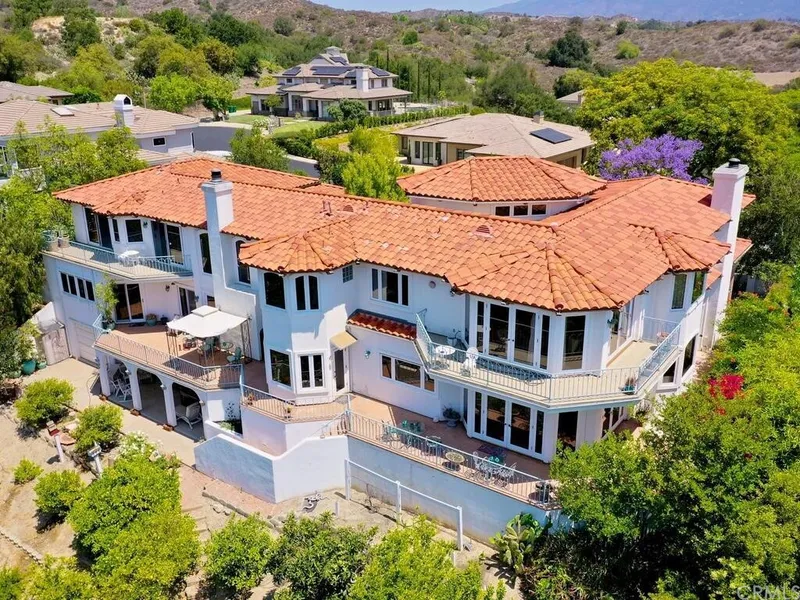 JUST RDUCED TO SELL ! Beautiful custom, gated, Hollywood like estate with private TWELVE CAR GARAGE, and endless, sweeping views! Located in the private and sought-after guard gated community of Coto de Caza and nestled in the prestigious neighborhood of "The Woods" this home offers privacy, elegance, & charm. Truly a craftsman's-built home with custom touches at every turn including beautiful arched windows, soaring ceilings & unbelievable views. Rear of home has 4 private decks on all levels for views off master suite and guest rooms! Perched up high, this 1-acre estate, offers large 2 level subterranean garage with workshop, equestrian potential with trail access, and multiple species of mature fruit trees. Two of the extra rooms upstairs could be easily converted to bedrooms to equal 6 bedrooms, as well as upper garage level could be converted to guest or in law quarters separate as well, subject to permits but ample room.