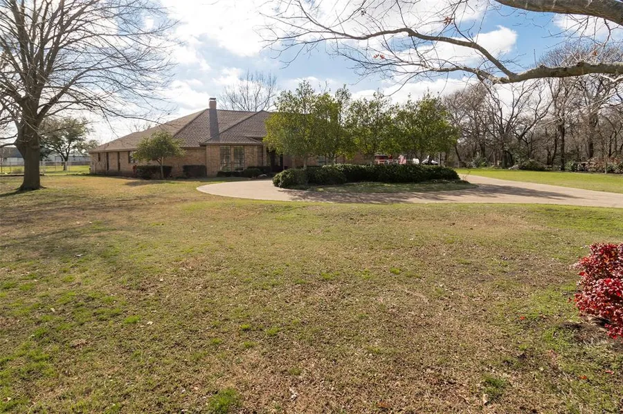 Expansive magnificent well built true custom one story on premium culdesac adjacent to white rock creek lot, over 100 established trees including fruit and nut on 2.640 pristine acres. Beautifully appointed home features hardwood floors thru out, plantation shutters, karastan wool carpet, two large wood burning brick fireplaces, custom double iron doors, a 2000 sf stone patio, a 40x30 shop , horse stables, pipe fencing around perimeter of property, gorgeous mill work thru out home with custom built ins, wet bar, cedar closet, media room, also could be mother in law suite, extended circular concrete driveway, large rooms for great entertainment, $25K garage allowance, NO HOA, additional land avail, spacious lot