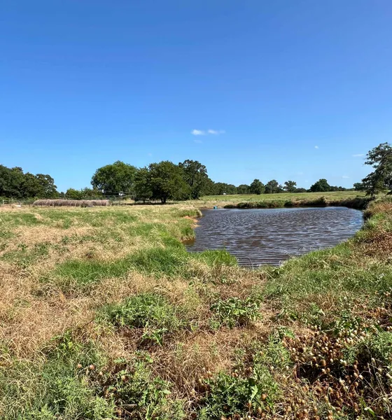 The property boasts two functioning water wells, supplying water to both the home and the barns. With cross-fencing and seven ponds, the layout is well-suited for various livestock operations. The cross-fencing allows for two pastures of 20 acres each in the north, a 40-acre pasture in the middle, and 44 acres in the south. The southern pasture features multiple trees, including producing pecan trees, live oaks, and hickory trees.