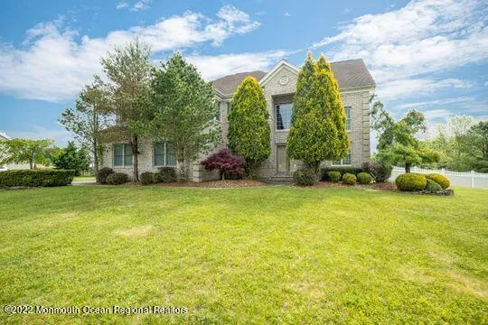 Sought after Whispering Grove, Colonial with full Brick front, with 5 bedrooms, 3 full baths, and a half bath. Enter into a lovely two story foyer, with bedroom/den with private door, off foyer. Formal living room, dining room, with a 13x12 sunroom. Beautiful eat-in- kitchen, with center island and 12x8 sitting area, over looking your oversized fenced in yard. Family room open floor to ceiling with gas fireplace and open to the upstairs. Spacious upstairs overlooking the family room. Master bath w/double sink and oversize tub with jets. Jack and Jill setup and 4th bedroom with full bath and walk-in-closet. 3 car garage and full basement.