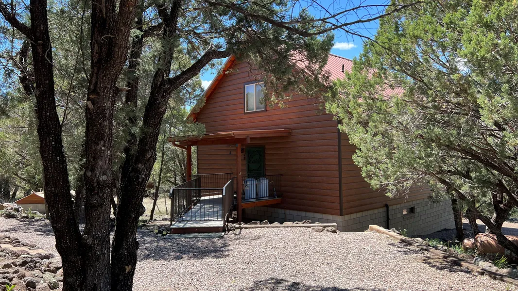 You will find your dream getaway cabin or new home located approximately 6 miles from the village of Reserve, bordering the National Forest. This low maintenance cabin features amazing, log-look steel siding, which never needs sanding or painting! The main floor is 1120 sq.ft and has a full bathroom, large bedroom w/ walk-in closet, laundry, kitchen and great room. The large windows showcase the gorgeous mountain views. Spacious loft area has a full bath and can be a family room or a master bedroom. Fully finished lower level has beautifully stained concrete floors and is the perfect space for recreation and storage. It would make a great bunk room for visitors. Throughout the home you will find special touches and excellent craftmanship. From the hand plastered and knotty pine walls, to the stunning kitchen cabinetry, and the hidden laundry area. The home was built to last, easy to care for and very comfortable. Space has been cleared on the lower lot to add a garage or workshop. Walk a few steps across the road and into the Gila National Forest perfect for hiking, horseback riding or hunting.