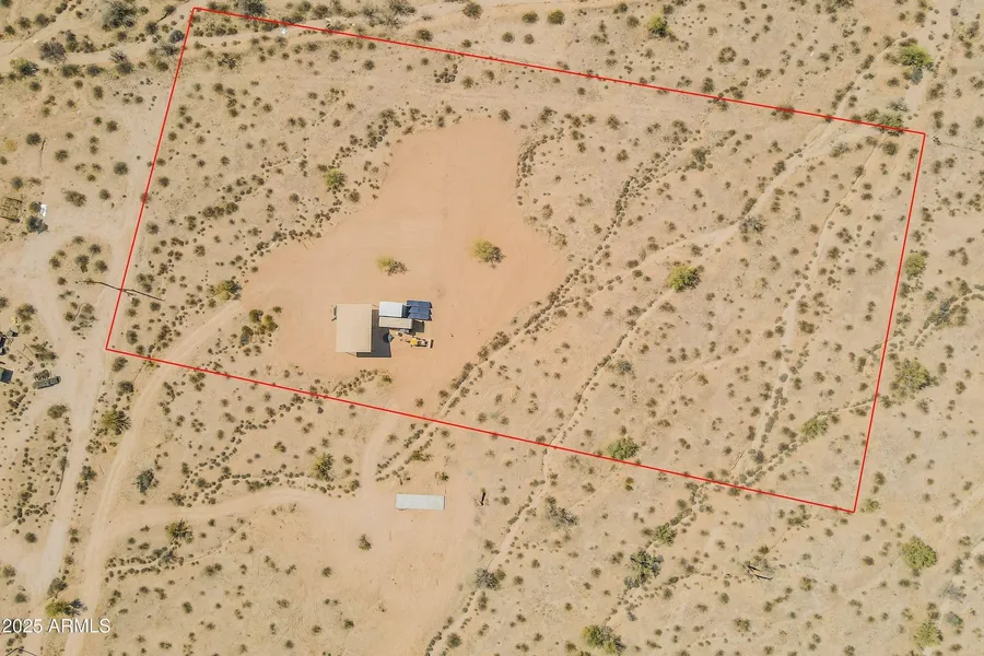 Secluded 5-Acre Lot with Stunning Mountain Views in Hidden Valley** Discover your peaceful retreat just outside town on this spacious 5-acre parcel (330' x 660') located at the end of a dead-end road, beyond a gate, and down a private drive. Enjoy breathtaking mountain vistas to the west, south, and north, plus evening views of Maricopa and Chandler to the northeast. This partially developed property features: - An ED3 power pole on the eastern boundary (power not yet connected) - A robust off-grid solar setup with 18 active 250w panels (out of 25 total), wired to a 60A charger and a large 48V battery bank - A 12' x 40' concrete slab with a 10' x 18' shed housing the solar and battery equipment - Solar panels neatly arranged across the slab - A 32' container elevated on pylons with a front deck area - A 30' x 40' x 16' shaded parking structure ideal for RVs - An 800' private well with pressure tank and 5,000-gallon buried water tank, fully plumbed and operable via generator or future power connection - A cleared and groomed building site, approved for a 3-bedroom, 2-bath home based on a recent septic percolation test. Additional included equipment: - A 1980's John Deere 410C backhoe (engine runs well; minor hydraulic repairs and two flat tires needed) valued at $14,000 - A portable concrete mixer stored inside the container Reliable wireless internet is available through Community LTE, making remote living convenient. Hidden Valley properties are in high demand, with rapid development near Maricopa. Don't miss your chance to own a quiet, remote oasis with no close neighbors!