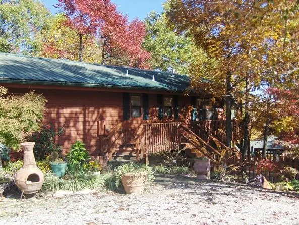 No. 01294 CHARMING COUNTRY HOME with 2 bedrooms and 2 baths and so many extras. The home sets on 5.06 acres that is mostly wooded for a low maintenance yard. There are multi level decks along with a gazebo for entertainment with a picturesque view of the Ozark Mountains. During winter months you can see all the way to the White River. Under the Gazebo is a 2 car carport that could also be used as storage. The home is wood sided with a metal roof and tucked into a grove of trees giving it a cabin like feel. The inside of home has an amazing kitchen with marble counter tops and breakfast bar, upper and lower lazy susans in the cabinets, an appliance garage, electric range, micro hood, dishwasher, and tons of storage. A full length wall of windows brings the outdoors inside all year long. A native stone fireplace with gas logs keeps the chill off during cold winter nights. It was once a wood burner and could easily converted back to wood. Each bedroom has a private dressing area and makeup counter. Bathrooms have marble counters and upscale fixtures. Located only 15 minutes from Mountain View and the White River. Come enjoy this serene setting! $169,000.