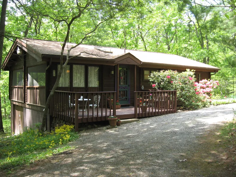 Hansel and Gretel cottage on 5 ac made of solid cedar logs that beckons you for a weekend escape! Custom front door, dutch doors, artsy finishes and cradled by flowering plants this unique cabin is a one of a kind! Fairytale spot comes w/ garage built for crafty woodworking-220V w/ 20 outlets. Open floor plan w/2 BR & office/3rd bedroom. Dayroom is an open palettte surrounded in sunlight. Must SEE!