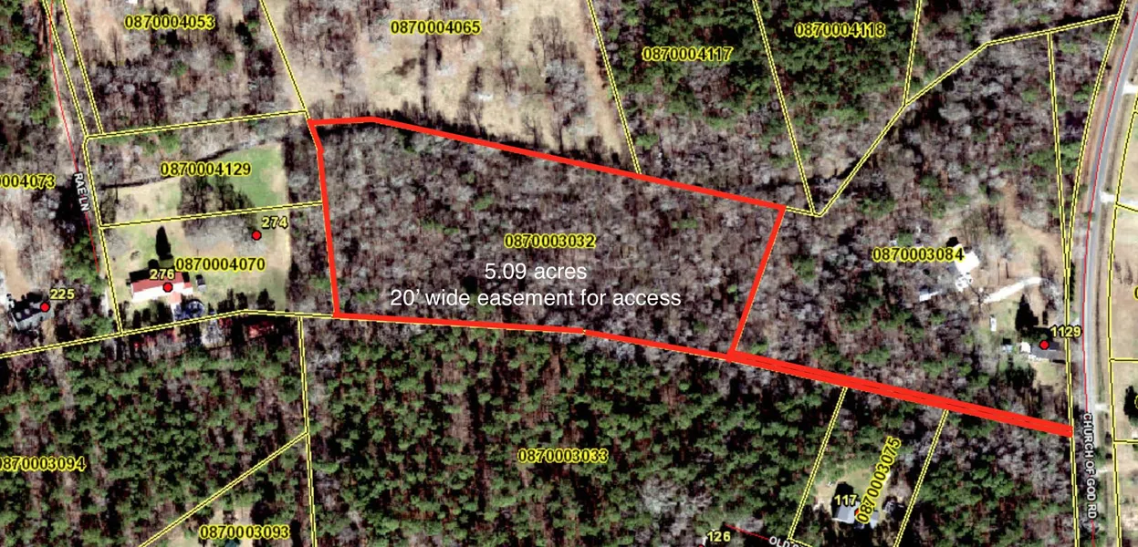 This is your beautiful spot in the country! This 5.09 acre lot has fantastic mature trees in a peaceful setting. There is a 20' right of way for access off of Church of God Road.