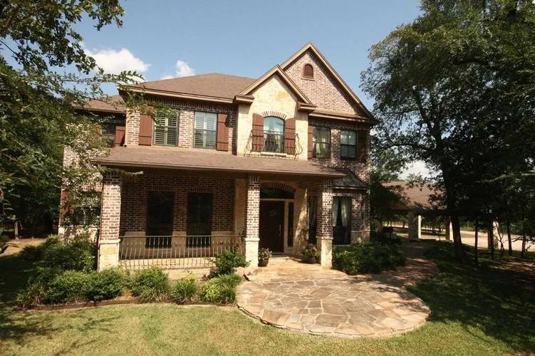 Built in 2005, the homes two-story brick and stone design features approximately 3,200 square feet of interior living space and an open design enhanced with high ceilings, hardwood floors and a well planned layout for family. The main level includes a living area with a stone fireplace, a spacious kitchen with granite counters, two dining areas, a study and a generous master bedroom with fireplace. Off the master bedroom is a private courtyard with access to a back patio and stone fireplace. The upstairs is set up for kids and centers around their own living area with 3 bedrooms and 2 full baths.