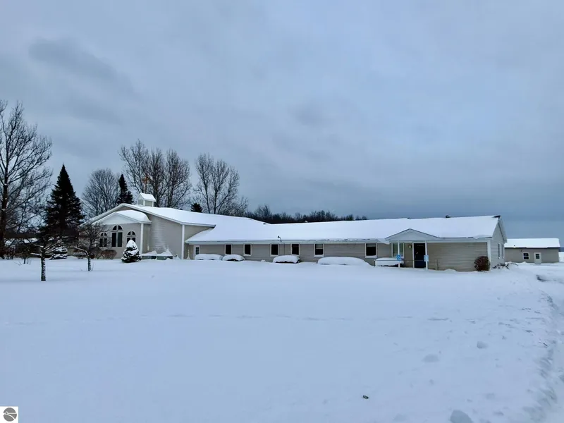 Commercial zoned property with endless possibilities! Formerly a church, this property is located on a main highly visible road on 5 acres. This property would make a great event center or business with spacious main building with an 80x80 steel-framed sanctuary. Two additional buildings (120x30 and 100x40) are equipped with water, electricity, and heat. Large paved parking area. Located in the heart of Northern Michigan, just minutes from ski resorts, trails and National Forest, great recreational area. Lease and Land contract terms available.
