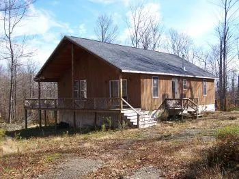 Secluded contemporary, built in 2005. Set on over 5 wooded acres. Upstairs you will find two bedrooms, one full bath and an open great room with kitchen and dining room. The kitchen features wood cabinets with ample storage and uniquely tiled countertops and floors. An island segments the open floor plan and offers a subtle division for functional purposes. The full basement is partially finished, containing a master suite featuring a bedroom with doors leading outside and a fantastic bathroom with double sinks, large walk-in closet, tiled shower and plenty of room for a large bathtub or even a hot tub. Outside the home there are many options for relaxing. The house features large decking on two-sides, overlooking the secluded grounds. With only a few things left undone, this could be the home you've been looking for.