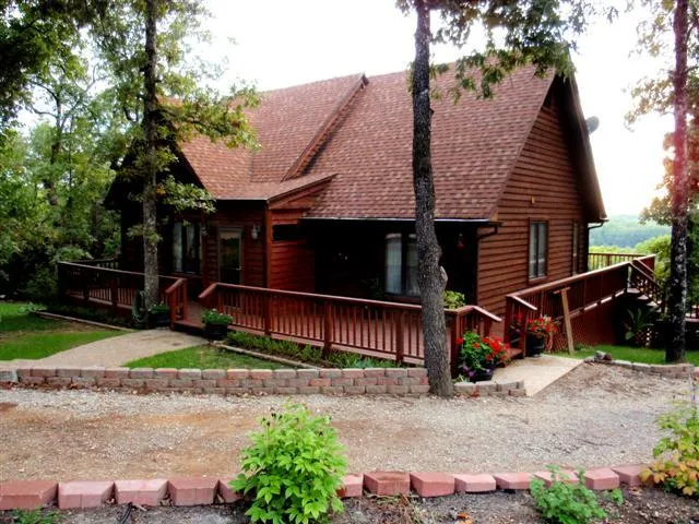 YEAR ROUND LAKE VIEW. Beautiful Cedar sided lake home on 5.3 acres m/l with wrap-around deck and sunset views. Quality throughout in this 3 BR 2 BA home. Three season Florida room with aggregate flooring. 40 X 64 insulated metal H/C building. 2-stall dock with 2 lifts. Special Features include a efficient water source heat pump, aeration septic system,circle drive with rail/stone fencing, plush landscaping with small orchard, fenced garden area, hobby room could be 4th bedroom, complete beauty shop station, top of the line appliances, Pella windows, parquet flooring, full finished basement,2 wood burning fire places, aggregate patio & sidewalks, back up 10k generator in case of power outage, 40X64 insulated frame metal building with full bath,H/C kithen area in building, huge seasonal closet/storage area, wood stove in shop,private 2 stall dock with 2 lifts,solar power,swim deck,fish station with water pump,encased foam & partially finished cabin. All for $375,000!!