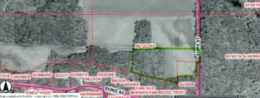 Zoning is R1 & A3. Both wooded and open land. Located close to Tainter Lake and 2 boat landings. Horses are ok on portion zoned A3. No single wide mobile homes, double wide is ok if home is new. Electric, telephone and gas available. Seller to survey prior to close.
