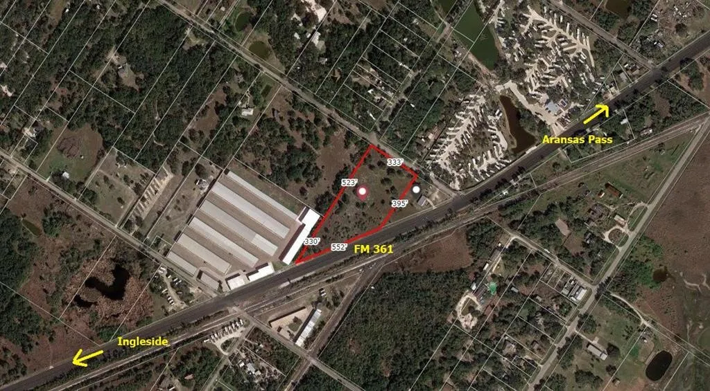 Right at 5.5 acres in growing Industrial area between bustling Aransas Pass and Ingleside, Texas. Trapezoid Shape (See aerial Photo) has approx 550' frontage on FM 361.Corner triangle (at Fm 361 and Morgan) is owned by the same party but is currently leased. May be available also for the right price. This would provide an additional 500' on FM 361.