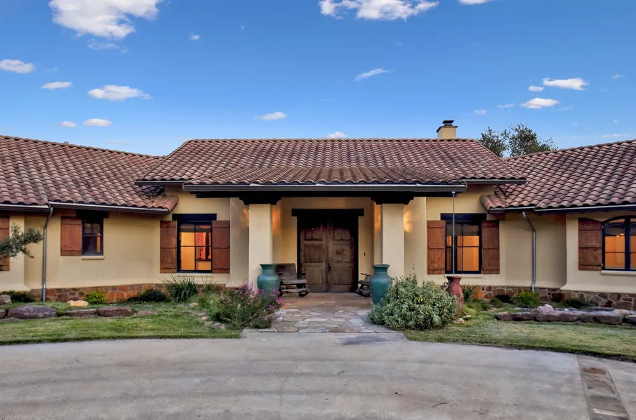 This gorgeous Spanish-style home, seated on a secluded 5.7-acre estate, offers a rare opportunity to experience the unmatched allure of being a part of the Preserve at Walnut Springs community. Constructed in 2005, the 3,855 sqft residence offers three bedrooms, four bathrooms, and a generous three-car garage. Distinguishing features include elevated wood-beamed ceilings, three inviting fireplaces, distinctive tile work, spacious rooms and closets, arched walkways, an eye-catching terracotta roof, and a circular concrete driveway. The living room and primary bedroom boast cozy fireplaces, adding warmth and charm to these spaces. Enhancements to the property include a private well, a newly added rainwater collection system, and a delightful pool that presents panoramic views of a neighboring vast 5,000-acre preserve. Throughout the property, from windows to porches, one can delight in the breathtaking Hill Country vista views and enjoy the serenity of ultimate privacy.
