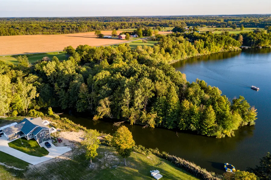 Beautiful 5 acres with approx. 1000 ft. of waterfront on All-Sports Rainbow Lake. If this waterfront property were mine I would put my lake house right in the middle of the property, a walkable gradual path in the woods would lead down to the cove where my boats would be docked. In the morning, I'd have coffee and watch the sunrise over the farm fields in the east. I'd go fishing and have the grandkids over during the day to play in the ravine, swim, and go for long tube rides on the lake. I'd need a short nap before taking everyone into town for dinner to the diner in Middleton, or Swany's Rainbow Inn (coming soon) in Perrinton. And when the day was near an end, I'd sit on my deck overlooking the lake and watch the beautiful sunset and realize just how blessed I am. The Rainbow Lake community is located just 30 min from Lansing and 1 hr. and 15 min from Grand Rapids. The HOA fees are only $175 a year. High speed fiber optic internet is being installed in the area right now. This is really a hot spot.