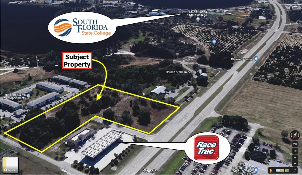 320' +/- OF HIGHWAY FRONTAGE IN AVON PARK. Just under 6 acres of commercial land on US 27, wrapping around the RaceTrac gas station and convenience store. Approximately 1/10 mile north of South Florida State College and zoned C2 it's perfect for a drive through restaurant like Chick Fil A or a sit down fast food like Chipotle. Or why not a Trader Joe's or other retail store? Even Apartments may be your desire for this commercial lot. Come take a look and snap it up to secure one of the few remaining choice parcels on US 27 in Highlands County! Lot measurements are approximate. Buyer to verify all information.