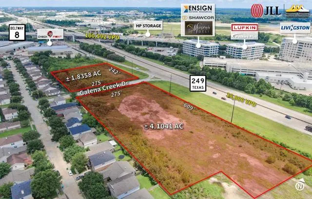 Auctions: 12:00 PM 9/28/2022 5.93+/- ac of commercial development land. Located at the corner of Galena Creek Dr and Hwy 249. Located in the Northwest Park MUD. Easy access to Hwy 249 with 38,000 vehicles per day and Beltway 8 with over 100,000 vehicles per day position this land in a great commercial and residential corridor near the Silver Trails, Blue Creek, and Willowood neighborhoods in Northwest Houston. Note: A Buyer's Premium (Buyer's Fee in WI) will apply for this property. Please see Terms of Sale for details. Broker Licenses: TX Broker: Jones Lang LaSalle Brokerage Inc. License no. 591725, Sales Agent Barrett Von Blon License no. 659224, Phone: 713-425-1861; Auctioneer: Jerry Michael Jones Auc. Lic. 6756, 800.801.8003