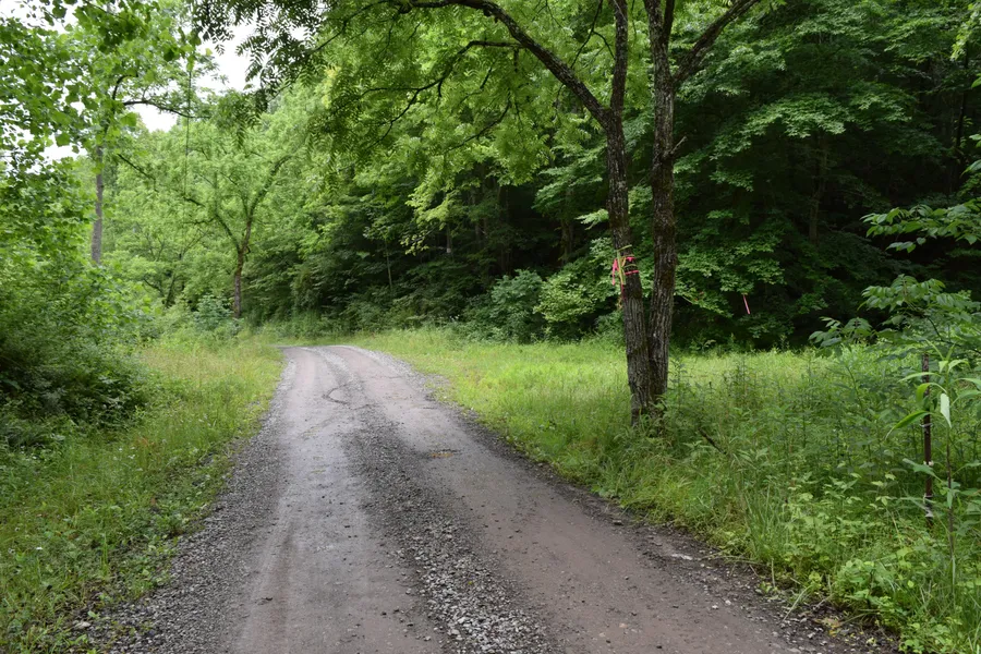 Research Parcel InformationFrom WV Route 16 in Mount Zion, drive west on Calhoun County Route 18/3. About .3 miles after leaving WV 16, CR 18/3 descends steeply. After reaching the valley bottom drive past an old house with a rusty red roof. On the right side of the road, a few hundred feet past the house, the mouth of a small hollow with an old road cut by ATV tracks appears on the right. Multiple fluorescent plastic flags have been tied on roadside trees near the mouth of the hollow. Park there.
