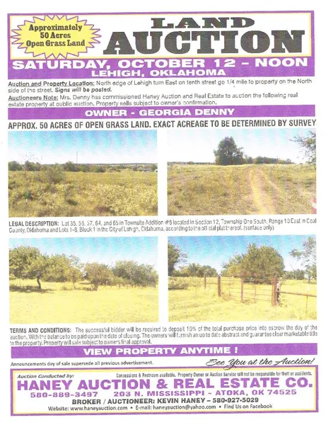 Research Parcel InformationFrom North edge of Lehigh OK turn east on 10th street go 1/4 mile to property on the north side of the street, watch for signs