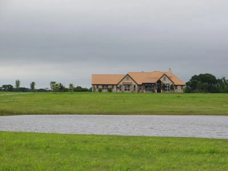 SOUTHERN GRIMES COUNTY ; 50 Improved Rolling acs with Gorgeous Custom 4bd 4bth Home. Home features an Awesome Island Kitchen with Custom Site built Cabinets, Professional Viking Appliances, Matrix Motion Leather Counter Tops, Level 5 Granite ( A MUST SEE), Island for Serving or Entertaining opens onto a Stunning Trophy room with 21 ft vaulted ceiling, Expansive Fireplace, Ample Glass with views. The Master Suite boast High Vaulted ceiling , Hurricane rated insulated double pain and tented windows (throughout the home), The Master Bath features Roman Style Walk-in triple Headed Showers, Comfort Control Toe Warmers , Vessel Sinks , Mosaic tile and Massive Closet with lots of Built-ins. There is a Formal Dining , Formal Living with large Fireplace , 2 large bedrooms with Hollywood Bath , Granite Tops and vessel Sinks, 4th Bed room has full bath with Walk in Shower . Large Media Room, Large Laundry with wet area and lots of Built ins. Wet Bar features Top Of the Line Kitchen Aide Stainless Wine Cooler and Stainless Ice Maker. 10, 12, 21 foot ceilings throughout, Crown molding, Travertine Flooring , Triple Zoned Central A/C and Heat. Covered Patio and finished 3 car garage. All overlooks Pond and Majestic Pecan lined wet weather creek,. Over 1500 feet of Frontage on Black top County road just a short distance East of Highway 6. GREAT LOCATION. There is a large 110 x 80 barn with slab , 14 ft eve height that houses a Nice 2 bd 1 bth Guest/ bunk House. The barn is ideal for livestock projects Equipment / Hay storage. This is part of the old Batts Dairy, I have personally run live stock on this place and is one of the finer production places anywhere. If you are looking for that Special Place with Great location and Stunning Home , you may want to consider a Tour. Respectfully Stuart