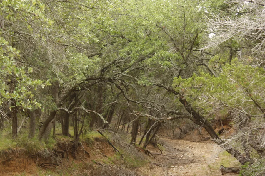 DIAMOND IN THE ROUGH! Abundant with beautiful liveoak and postoak trees, this property is one-of-kind in the Kimble County area. Views, views, views! Views of the surrounding hills make for great potential building sites for a home or weekend get-a-away. A large dry creek runs through the length of the property with large liveoaks lining the creek. This creek still has a spring in the bottom at the property's north end. The property has been partially cleared of cedar and cactus (up-rooted). Potential building sites have already been cleared. Electricity and telephone on site. An artesian well produces abundant good tasting water. New fence on front and north end of property (south end to be built). Two shipping containers sit on the property which make for great storage. Unlike most of the properties in the area, the majority of this property consists of red dirt soils with only a few limestone patches toward the north east end at the back of the property. The property is accessible by paved Ranch Road 385 cutting across from HWY 377 near London to HWY 290 near Harper. Yates crossing (Llano River) is just a mile down RR 385 from the property. Yates is a great place to go swimming or fishing, with deep holes of clear flowing water! Looking for a place that is just the right size and the whole package, this one's it!