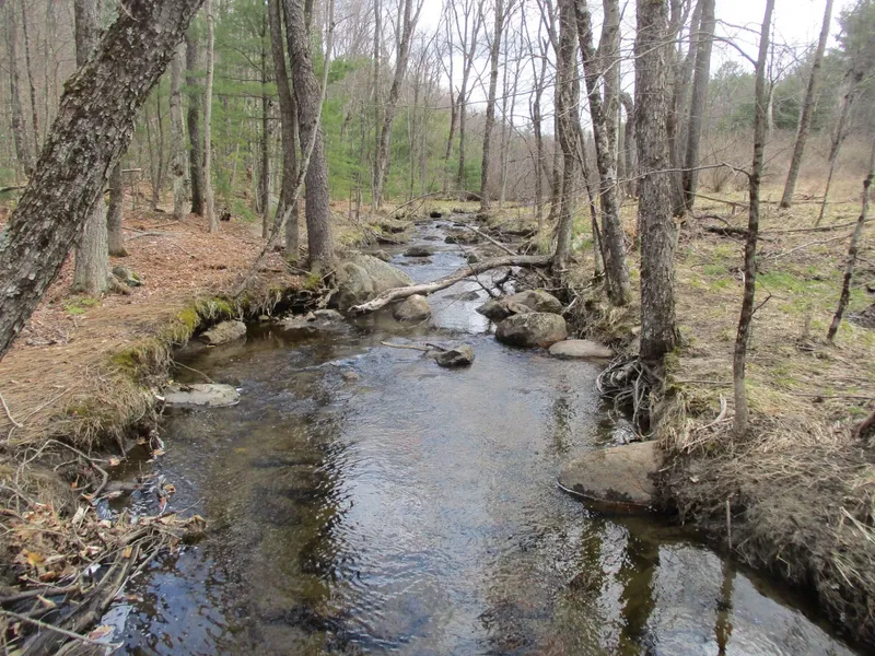 New York wooded land with Collins Brook and view for sale: 50 acre North Creek property less than 2 miles from North Creek village and 5 miles from Gore Mountain Ski Resort. This parcel offers great recreational prospects within its boundaries, but also terrific recreational opportunities due to its proximity to the North Creek area and the central Adirondacks.Located in the Town of Johnsburg, within the Hamlet of North Creek, the Collins Brook Retreat property is a short drive from Saratoga and Albany. The property is mostly zoned in North Creek as Hamlet Mixed Use, to the border of Collins Brook, then the remaining acreage, Rural Use. Access is via a deeded right-of-way (R.O.W.) from River Road, a seasonally-maintained town road through parcel 67.-1-45. This right-of-way also serves for access through Collins Brook Retreat for parcels 67.-1-37; 67.-1-8 & 9 and 84.-1-17 currently owned by 2 entities.Upon entering the parcel, there is a level field that was at one time used for agricultural purposes, as is evident by stone foundations and apple trees. This area would be well-suited for an off-grid home or camp, adjacent to Collins Brook and with views of Collins Mountain.Collins Brook, the most prominent feature of the parcel, runs along the length of the eastern boundary. Collins Brook merges with the Hudson River approximately 1500 feet downstream. Beavers are active on Collins Brook, creating small pools along its length. Given the pools and eddies, this brook can harbor a variety of fish species. The Hudson River can be accessed off of River Road, ~1.3 miles from Collins Brook Retreat, through a parcel of State Forest Preserve Land.The property offers a mix of tree species including oak and maple, white pine, spruce and fir in the lowlands. Terrain is variable with small valleys and ridges along the western boundary. Seasonal streams exit these valleys feeding Collins Brook.This property offers recreational opportunities for all seasons. The property is located in the northern zone for hunting (DEC Region 5), as well as in wildlife management unit 5H. Hunting opportunities are diverse, including deer, bear, and fall and spring turkey, as well as grouse and snowshoe hare.