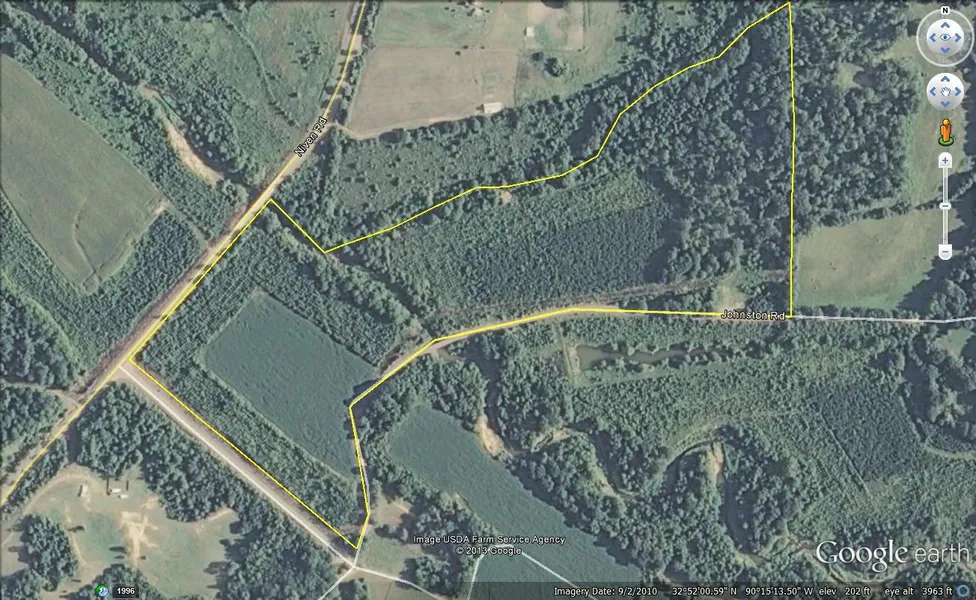 Yazoo County 50 Acres: Located about 3 miles north of Benton, Ms. at the corner of Niven Rd. and Johnston Rd., this 50 acres has a little of everything. About 5 acres are currently in row crop cultivation, 22.7 acres are enrolled in CRP contracts paying $2,100 per year and the remainder is in young hardwood. Part of the north line is Brick Kiln Creek and large Piney Creek runs through the property. There is plenty of road frontage as part of the north line is Niven Rd., the south and east line is Johnston Road.