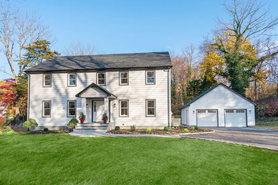 Welcome to this totally updated move-in ready 4-bedroom Center Hall Colonial with 3.5 baths in Harborfields School District. Situated in a sought-after neighborhood on 1 manicured landscaped acre offering total privacy and a detached 2-car garage. Step inside to discover the all new kitchen, 3.5 new baths, coffered ceiling, crown moldings, wood burning fireplace, all new wood floors, siding, windows, roof, plumbing, electric, stoops and walkways, The chef's kitchen is a true highlight, with white cabinetry, stainless steel Bosch appliances, oversized center island with quartz countertops, and bay window that overlooks the private and lush backyard. Adjacent to the kitchen is a warm and inviting great room with wood burning fireplace graced with shiplap and marble surround. Living room and dining room complete this level along with a powder room. Upstairs, you will find a generously sized primary bedroom, magnificent bath and walk-in closet. Second bedroom is expansive with an en-suite bath, third bedroom is large and a fourth share the the full bathroom with tub. This home provides the perfect backdrop for making memories.