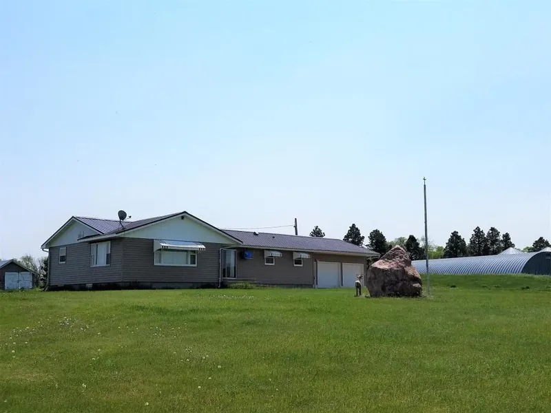 Private country living minutes from Lake Sakakawea's Beaver Bay Recreation Area. Surrounded by mature trees this 15+/- acre homesite offers 3,168 SF of finished living space. Well constructed 5 bdrm, 3 bath ranch style home with 2 stall attached garage, steel siding, and metal roof. Enjoy TWO full kitchens (one on each level), main floor laundry, and 3 main floor bedrooms. Dining area with patio doors plus large living room area which provides a great view of the farm. Basement includes an office, 2 nonconforming bedrooms, 1/2 bath, and a LARGE family/game room. Tons of storage throughout. This small farm also offers TWO large QUONSETS (5,100 sf & 3,724 sf), a WORKSHOP, and a functional 3,200 sf BARN with tack/milking room. Additional outbuildings and grain bins are included. Private well and updated septic system. If you are looking for country living near the lake, shop space for work/play, or a small hobby farm, this may be the right fit for you. This property is also being offered as a 40 Acre parcel please see MLS#