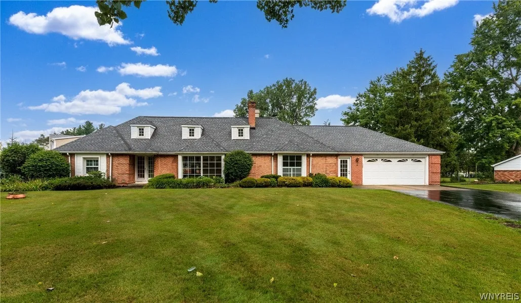 Outstanding Full Brick Ranch Style Home. This Exceptional Home is Located on a Premier Street in Elma close to Lancaster border. Highlights include 4 bedrooms- 2 beds on 1st floor featuring Primary Bedroom w/Ensuite Bath. The 2nd flr Features 2 Spacious Bedrooms/Full Main Bath. Formal Living, & Dining Room, 20 X 20 sq ft Family Room, 2 Fireplaces, Updated White Kitchen w/Granite, 1st flr Laundry. Add'l Features of this Home/Freshly Painted Throughout, Formal Living Room/Full Wall of White Built in Bookcases, Bowe Window, Brand New Neutral Carpeting, Add'l Recessed Lighting in Kitchen, Stunning Hardwoods Throughout, Lovely 3 Season Room Overlooking Inground Pool (Filter 10 Years Old), Areas for Cabana/Lounges etc. Updated Baths, Lower Basement Level Part Fin/Play Room or Storage, Fenced Yard, Full House Generator, all Mechanics and Windows w/in the Last 10 Years. Furnace, AC, HWT [8/2022]. 2.5 Car Attached Garage, Fenced Yard, Professional Landscaping/298 ft Deep Lot. House flows like a Ranch w/ the majority of the living space on the 1st flr.
