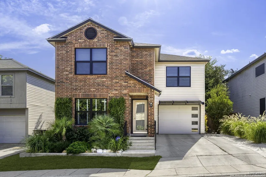 Experience modern elegance and convenience in this one-of-a-kind highly upgraded home! This gated community is nestled in the vibrant heart of the central northwest. This home offers unparalleled access to key destinations like the medical center, UTSA, and Rim. Step inside to be greeted by an abundance of natural light that highlights the contemporary themes throughout the house. Upgraded thermal break energy efficient aluminum windows. The spacious open layout seamlessly connects each living space, making it perfect for both relaxing evenings and entertaining guests. At the heart of the home lies a stacked marble electric fireplace that adds a touch of warmth and elegance to your living space. The kitchen is a culinary enthusiast's dream, boasting upgraded lighting and exquisite granite countertops. A thoughtfully designed faux kitchen skylight further enhances the ambiance, while a commodious walk-in pantry ensures ample storage. Relax outside on the backyard patio slab shaded by mature trees, complemented by meticulous landscaping encircling the entire property. Sprinkler system, custom lighting installed for ease of maintenance and outdoor living is as inviting as indoors. An extra storage shed provides additional space for all your needs. The home's upper level features a luxurious master suite with a marble-tiled bathroom equipped with a jet shower-a true sanctuary for relaxation. A similarly upgraded guest bath ensures that every aspect of this home exudes quality and style. The home can come furnished as well! Check out the slides for a snapshot and come schedule your showing today!