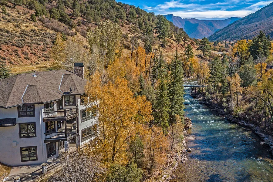 Spacious riverfront home located just 5 minutes from Roaring Fork Club and 20 minutes to ski resorts in Aspen and Snowmass Village. Completely renovation 2019. Open floorplan, chef's kitchen, statement fireplace, amazing natural light. Stunning primary bedroom with luxury en suite. Theater room, lower level bar/den, decks overlooking the river, private access to exceptional fly fishing! Access to hiking/biking/XC ski path. A rare refuge or a legacy mountain home for your family to enjoy for generations. 3D tour and virtual showings available.