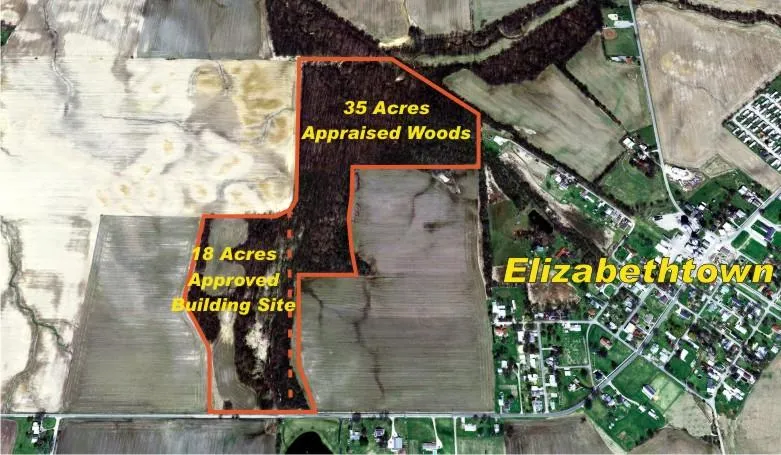Over 50 acres of beautiful scenery. The property is located on the north side of CR 475 S and west of Elizabethtown. Six miles southeast of Columbus and 3/4 mile east of US 31.
