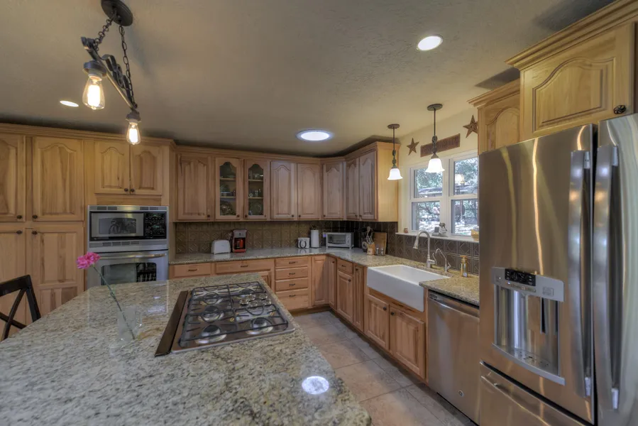 Your ranch oasis awaits you on 50+ acres with beautiful long distance hill country views, very quiet and secluded. There are two gated rock entrance's along a blacktop road that leads you to the 4 bedroom, 3 full bath, 3,260 sq ft rock home, beautifully landscaped and manicured property. There is an in ground pool with solar to keep the pool warm year round and a 14' x 12' 'Alamo' pool house with adjacent fire pit great for entertaining guests, Property is completely fenced with home and front highlighted by pipe and rock fence. 1,792 SqFt workshop,horse/hay barn, garden area. There are two wells on the property with a 2,500 gallon storage tank and a reverse osmosis system. Home was built in 1984, it has been meticulously maintained and the owner has made many custom updates, tile floors, stained concrete, granite counters, cultured marble vanity's, eat-in kitchen with all new stainless steel appliances, hickory cabinets, over-sized bedrooms with large closets, two living spaces, an office with own entrance, could be a mom-in-law suite. Hill country living at it's finest only 10 minutes to San Marcos & Wimberley. Unrestricted land, you can hunt close to town.