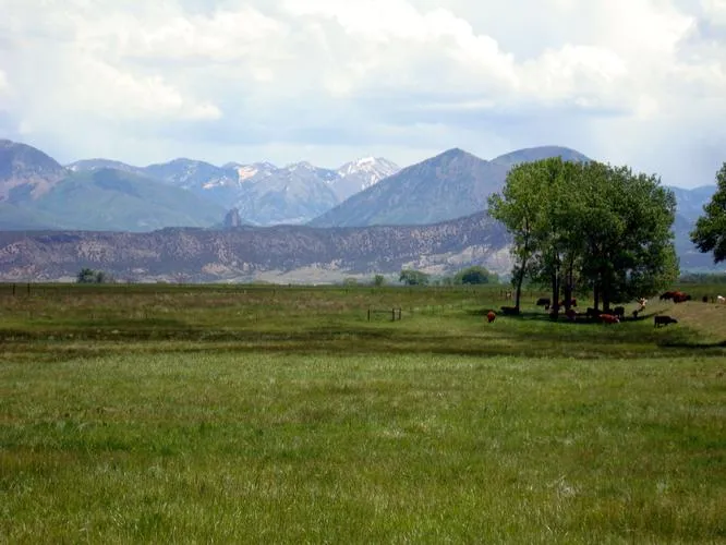 Extraordinary ranch offering west of Crawford in cattle country. Same family ownership for 60 years. 500 acres total and 300 irrigated with good water rights including storage water. Raise hay and pasture and use this mild weather ranch as headquarters for livestock operation. Large rolling fields with scattered cedars and cottonwoods. Pinons and cedars on the rim of Smith Fork Canyon. Pleasing land character and great West Elk Mountain views. Access from two county roads and just ten minutes to Hotchkiss. Includes sturdy ranch house, shop, machine shed, and stackyards.