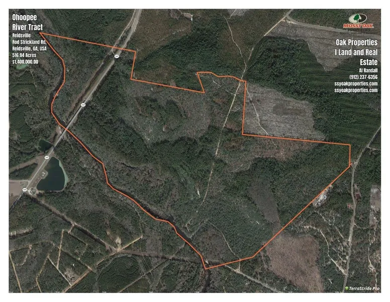 Hunters and timber investors take a look at this 500 acre property just outside Reidsville Georgia in some of the best deer hunting in Tattnall Co. With over 1.5 miles of Ohoopee River frontage, this property has 200 +/- acres of clear cut timberland with the remainder of the property being in live oak hammocks, longleaf pine and a substantial hard wood inventory. This property features a neighbor with over 7,000 acres of agricultural land that game forage on in the summer and feed in the oak hammocks and the hardwood bottoms. There are several duck ponds and one river fed lake on the property to attract the whistling wings of the sky as well as great fishing in the river and river fed lakes. There is a 1,000 sq ft bunkhouse with a well, power and septic system for additional buildings, and a dock overlooking the Ohoopee River. This property has been trophy managed and has been on a protein feed program for 2 years. This is truly a man's outdoor haven. Call Al Randall with Mossy Oak Properties to view this outdoor dream property at 912-237-6356.