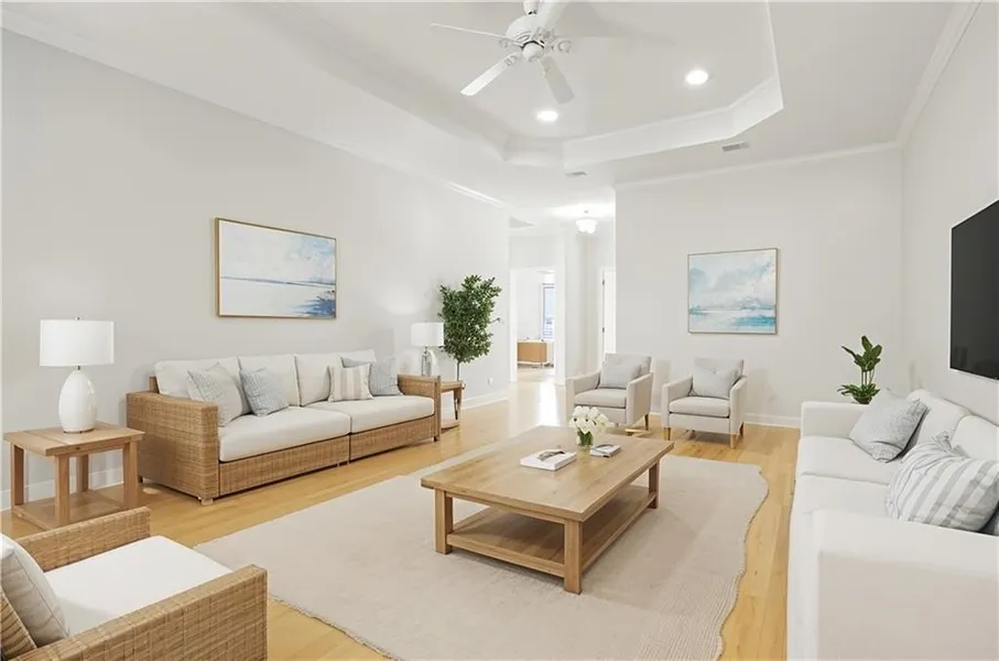 2024 new roof installed, AC approx 6 yr old, driveway just pressure washed Oct 2025. Has been owner occupied so taken care of. One level living...2 car garage....+ coastal tabby sun room & spacious FENCED back yard & outdoor patio. Interior features include trayed living room ceiling & hardwood floors, dining area adjacent to kitchen w/walk in pantry. Off the dining area is a cooled/heated sunroom w/large portrait windows to capture the green space & shades for privacy, climate control, etc. . New roof in summer 2024, new 3 ton AC unit in 2019. Primary bedroom is huge w/lovely window facing the private back yard while primary bath has double sinks, soaking tub, shower, plus walk in closet that is massive! Open living room and dining room w/beautiful hardwood floors.