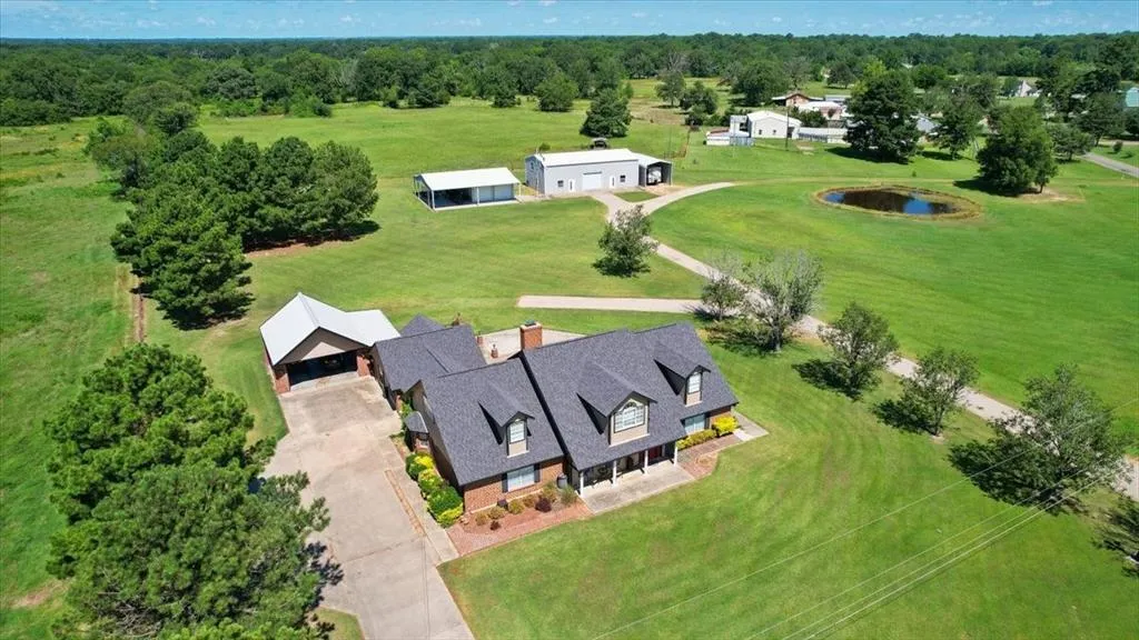 Say Goodbye City Life, plan your move today to this Northeast Texas home on acreage. We have approx. 4400 sq ft & features 3 living area, 4-bedroom, 3 full bath, and 2 dining area. Down is primary bedroom with ensuite and 2 additional guest room. There is a large living area with wood burning fireplace and additional den with bonus room that can be used as an office or craft room down. Up you will find a large loft room perfect for a game room, a spacious bedroom and a full bath. On the exterior, you will find a courtyard as well as covered porches perfect for entertaining and an attached 2 car carport. The open yard has a SF pond, a shop that is 25 by 25 with overhang on 3 sides and an additional shop that is 30 by 60 including a 23 by 30 loft for storage that could be easily converted to a living quarter, and a covered RV storage area. The acreage includes approx. 12 acres that is ag exempt and livestock ready with 2 additional SF ponds and had a berm. Schedule a tour today!