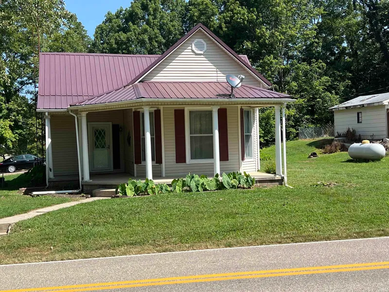If you are desiring rural living you can't pass up this opportunity. This well kept older home provides well maintained older home charm with a wrap around porch. Step into two large bedrooms with beautiful molding and large windows. The kitchen is spacious with lots of storage. This home has a new HVAC until but also provides a wood burning option to help reduce cost. Step out to a large lot with mature trees and a creek running through the back of the property. There is also a large pole barn with a loft for extra storage. The listing also includes a vacant lot right across the street (.3 acres).