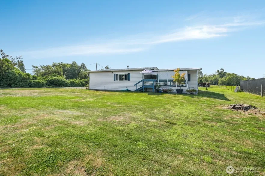 Island Property! Over 11 acres of level, usable land with no wasted space. This updated 1978 triple-wide manufactured home offers new LVP and carpet, fresh paint inside and out, and vinyl windows throughout. A covered front porch (11x20) and spacious back deck (12x22) invite relaxation and gatherings. Inside are 3 bedrooms, 2 baths, a primary suite with walk-in closet, a large living room with wood stove, and a separate family room. Outbuildings include a three-bay equipment building, shop and barn (47x13 and 13x27) with power and water, plus a loafing barn and utility shed with 120/210 service. About an acre is fenced with pasture beyond, abundant wildlife, and peaceful scenery.