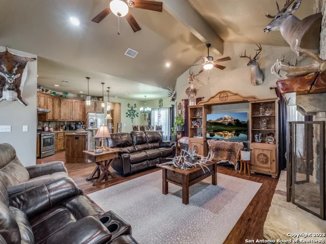 "AG EXEMPT" UNRESTRICTED 8 Acres - Embrace the rustic charm of Texas living with this fabulous home & shop set on 8 unrestricted acres! 40 x 45' shop, 3bed/2bath 2173 Sqft home that is private & secluded, RV Hookups w/50 & 30 AMP, along with 110 plug. This faulous property offers a wonderful view of the Texas Hill Country! Step inside, the open floor plan welcomes you. Centered around a cozy fireplace in the living area, perfect for gathering with friends & loved ones. The kitchen is a chef's delight, boasting ample cabinetry, generous granite countertop and stainless-steel appliances. The inviting kitchen island, KINETICO WATER SYSTEM whole house, Demand hot water heater, with casual bar seating, ideal for morning coffee or evening conversations. Each room in the home offers abundant space for rest and relaxation, ensuring comfort at every turn. Step outside to the covered patio, a serene spot for enjoying the tranquil outdoors. The expansive acreage beckons you to create your personal oasis, whether it's a lush garden, a playground for adventures, or a peaceful retreat. This property isn't just a home; it's an opportunity to own your slice of Texas and create a legacy in a space where every corner reflects your personal style and dreams. Just 5 miles to town but feels remote from everywhere. Enjoy the local town of Bandera, shopping, dining, entertainment, museums & more. NO RESTRICTIONS, NO HOA or Fees!*