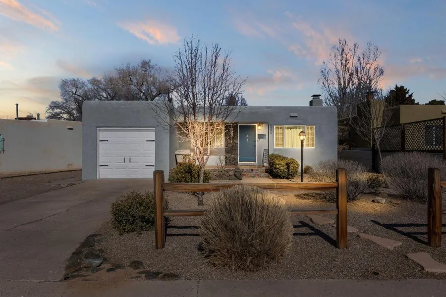 This beautifully maintained bungalow in Parkland Hills blends vintage charm with modern updates. Located near Ridgecrest, it boasts great curb appeal and recent upgrades, including newer windows and HVAC mini splits, a 200-amp electrical service (2017), and a durable TPO roof (2019). Inside, stunning hardwood floors and a cozy wood-burning fireplace. The kitchen is a chef's dream and features granite countertops, copper fixtures, a custom butcher block island, and a wine bar. A versatile second living space with a walk-in closet adds flexibility. The primary suite has double sinks and a walk-in closet. The landscaped backyard includes a raspberry bush, herbs, veggies, and roses. Just minutes from Nob Hill, UNM, KAFB, Sandia Labs, and downtown, this home is a rare find
