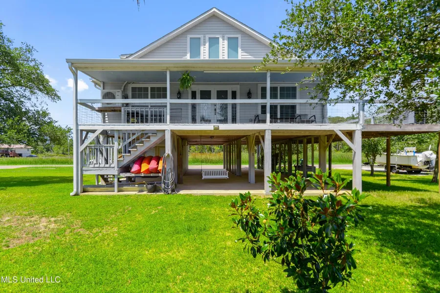 Coastal charm meets modern comfort in this beautifully renovated 5-bedroom, 3-bath waterfront retreat, nestled along nearly 175 feet of serene shoreline. Enjoy breezy mornings and sunset views from the expansive wrap-around porch, or unwind inside beneath vaulted ceilings in the open living and dinette areas. With dual master suites, a secondary living space, private sun deck, pier, and plenty of storage-including a raised, standalone storage building-there's room for everyone and everything. Located just minutes from shopping, nightlife, and all the laid-back fun the Bay St. Louis area has to offer, this is true Gulf Coast living at its best.