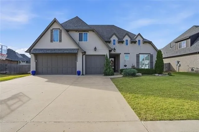Live in one of Bixby’s most desirable neighborhoods: Birmingham at Yorktown! This 4 bedroom, 3 bath home combines striking design with everyday comfort. The beamed living room features hardwood floors, built-ins, a cozy fireplace, and a light and bright feel with a wall of windows along the back. The chef?s kitchen is a showstopper with a full-size fridge/freezer, oversized 6 cm granite island, modern tile backsplash, and a large picture window in the breakfast nook. Flexible main floor layout includes the spacious primary suite plus an additional bedroom or private study with its own full bath. Upstairs offers two bedrooms and a game room, perfect for extra living space. Enjoy outdoor living beneath the covered patio overlooking a nice-sized backyard. Extra touches include a custom iron front door, epoxy-coated 3 car garage floor. Neighborhood amenities elevate the lifestyle with community pool, park, and miles of walking trails.