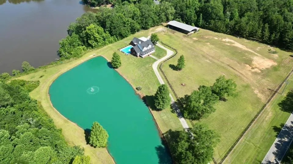 NEEDMORE ACRES is three miles from Troy's Downtown on over 6 acres of gently rolling land. The land features a 1.3-acre Heavily Stocked Pond with Bass, Orange, White, and Black Koi, and Carp with a majestic waterfall in the center, L Shaped In-Ground Pool, a 40x80 Steel Framed Pole Barn with an additional portable storage shed, an additional view of a 12-acre Lake behind the property, all wrapped by a Black Privacy Fencing with an Automated Security Entrance Gate. Entering the property, you will be greeted by a long stretch of Concrete Driveway, joining the 4-car Carport. This almost 5,000 sq ft house includes 5 Bedrooms and 3 Baths. The first story contains a spacious Living Room with Wood Burning Fire Place, a Formal Dining Room and/or Informal/Office, a Large eat-in Kitchen with granite countertops, all stainless steel Kitchen Appliances, a center Kitchen Island, a Large Laundry Room, bath, Master Bedroom, and Master Bathroom. The second story contains Four Bedrooms, Two Full Bathrooms, an upstairs Living Area, and plenty of Storage Space. Off the backside of the 2nd story is a balcony overlooking the property's Pond and Pool and the 12-acre lake on the adjoining property. The back patio area features a spacious Outdoor Entertaining area and an L-shaped pool with a new Pool Liner this year, guarded by Black Metal Picket Fencing. Adjoining the main house is an unfinished Mother in Law Suit and/or Pool House, Activity Room, or Home Gym with Storage Room. Views from the Covered Front and Back Porch creates the perfect setting for unwinding or entertaining guest.