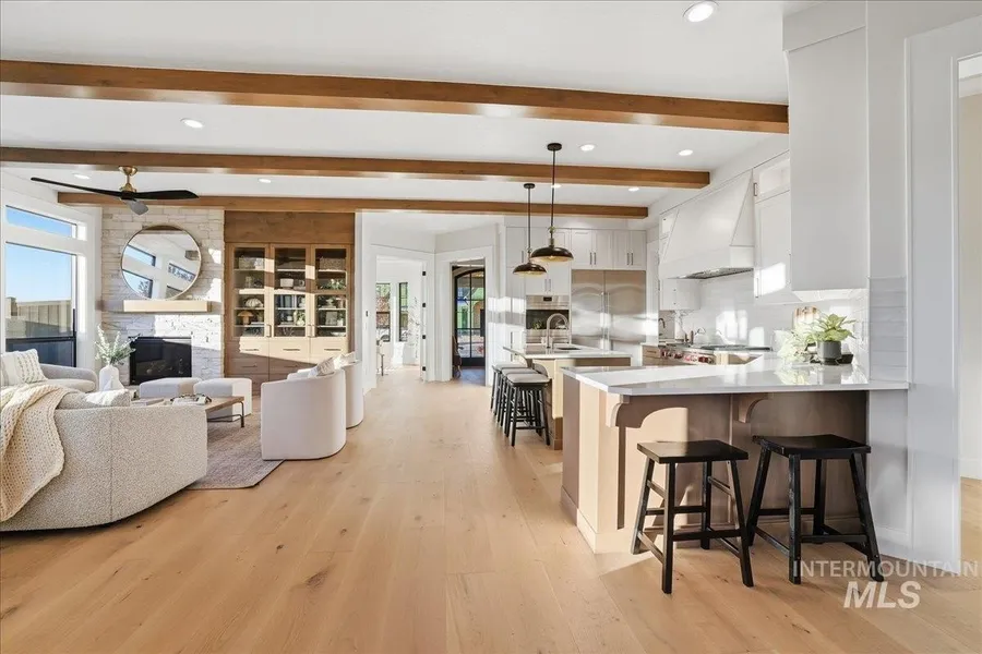 Discover your sanctuary in the Cambridge at Kingswood Estates. From the moment you arrive, the impeccable craftsmanship is unmistakable. A striking arched double-door entry welcomes you into a space defined by custom trimwork, elegant beamed ceilings, designer lighting, & luxury appointments unique to this distinguished community. At the heart of the home the chef-inspired kitchen is a true showpiece, featuring Wolf® appliances—including a 48" cooktop, dbl ovens, & built-in Sub-Zero® refrigerator—paired with custom cabinetry, a butler’s pantry, & walk-in pantry. The spacious great room offers a floor-to-ceiling custom stone gas fireplace flanked by an illuminated built-in and beautiful engineered wood flooring flows throughout the home. The main-level primary suite is a private retreat, offering a state-of-the-art steam shower with adjustable temperature and mood lighting, a built-in sound system, and heated tile floors for the ultimate in comfort + a custom built walk-in closet. A private main floor guest suite & a light filled den/office complete the main level. Upstairs, a spacious loft w/wet bar provides the perfect flex space alongside two oversized bedrooms & full bath. Outside a covered patio with tongue & grove ceiling frames serene views of your natural stone waterfall & built-in firepit, and lush, professionally designed landscaping. Community pool, pond & water features.