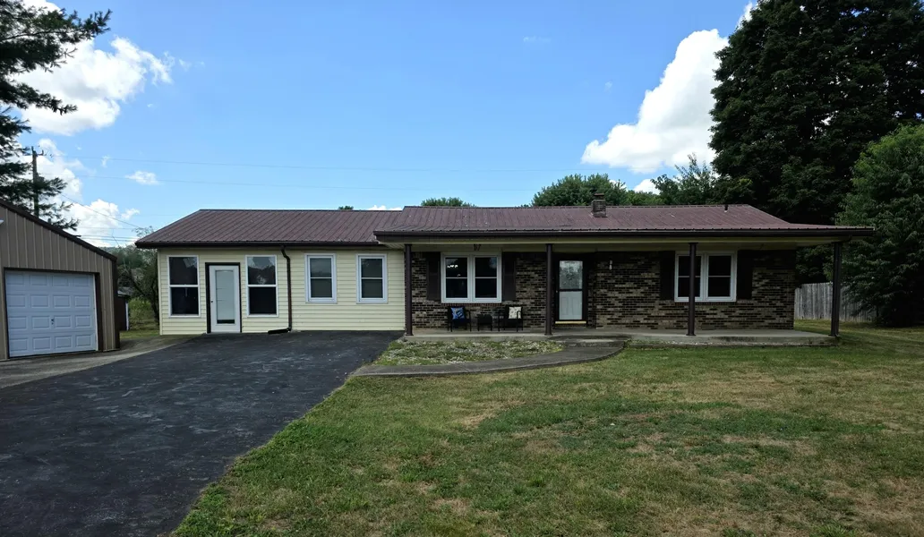This brick ranch style home boasts two bedrooms, living room, kitchen, large dining room, utility room, bathroom, sun room, large covered back deck, central heat and air and 2 car metal detached garage. Home sits on Lot 10 Hartland Subdivision. The owner was in the process of remodeling when he was relocated. With a little finish work this would make a very nice and affordable home.