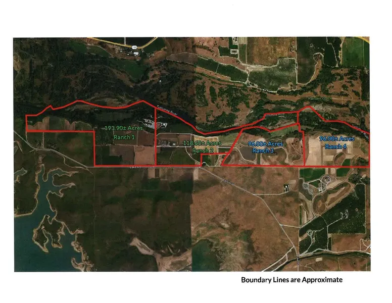 Total of 504.50 acres comprised of Ranches 1 & 2 (312.50 acres), Ranch 3 (96 acres) and Ranch 4 (96 acres). To be sold as 3 separate ranches: Ranches 1 & 2 together, Ranch 3 and Ranch 4.